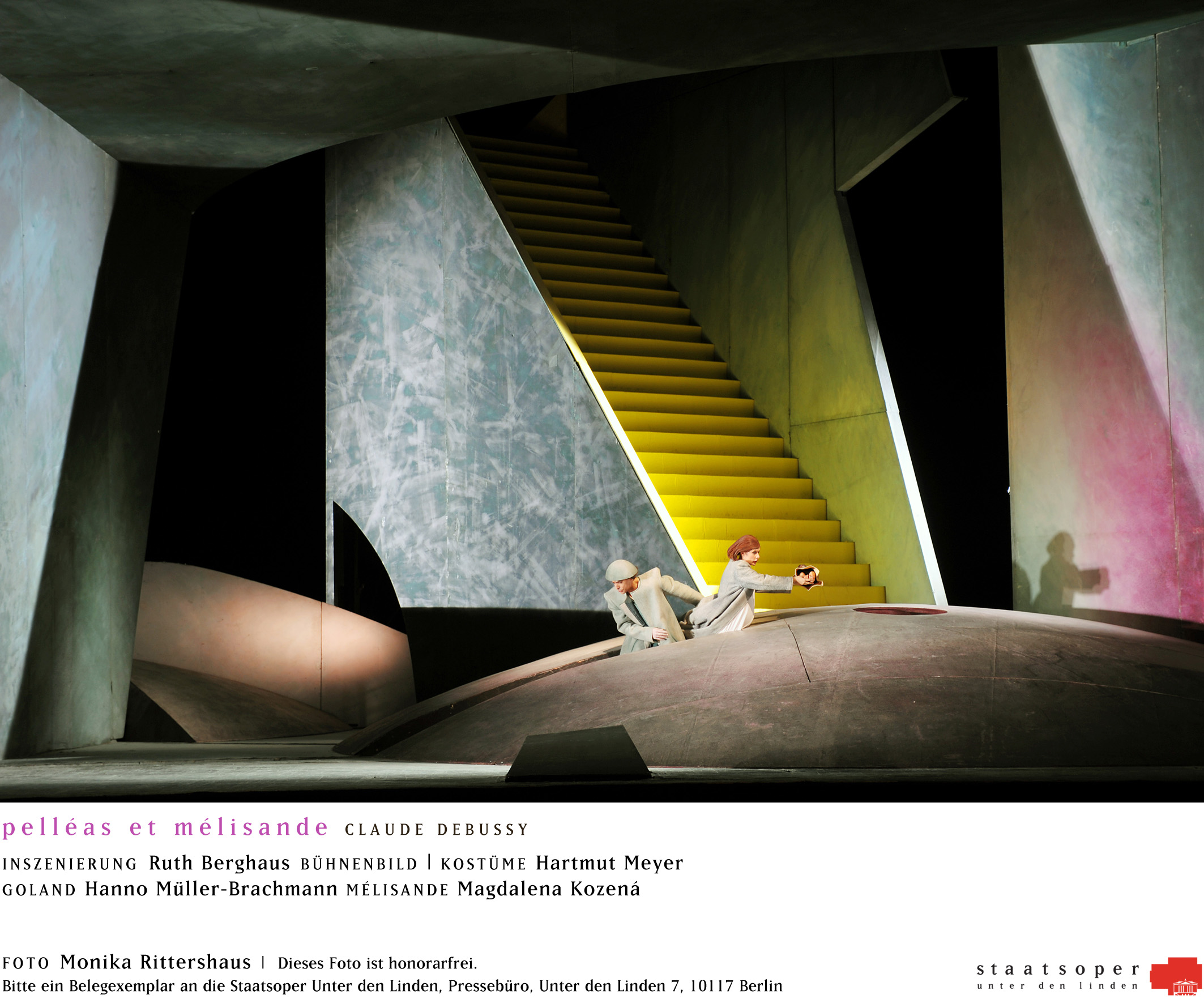 Nach den Ostervorstellungen der Meistersinger von Barenboim vor zwei Wochen ist Pelléas et Mélisande von Rattle die diffizile Pastorale nach dem volkstümlichen Osterlamm. Ruth Berghaus‚ karge Inszenierung ist von meisterlicher Mottenkugeligkeit. Die Personenführung besticht. Das eine oder andere Kostüm stellte anscheinend die anthroposophische Gesellschaft Berlin bereit. Um in punkto Hochromantik und Neoromantik nicht durcheinanderzukommen, ließ ich leichten Herzens die Karte für den Tannhäuser am Samstag in den Landwehrkanal fallen und konzentrierte mich vollständig auf Debussys Neo-Opus am Tag darauf. Neben mir sitzen zwei Russinnen, jeweils in Form einer Dame. Touristinnen, seufze ich. Beide heulen, als Mélisande stirbt.