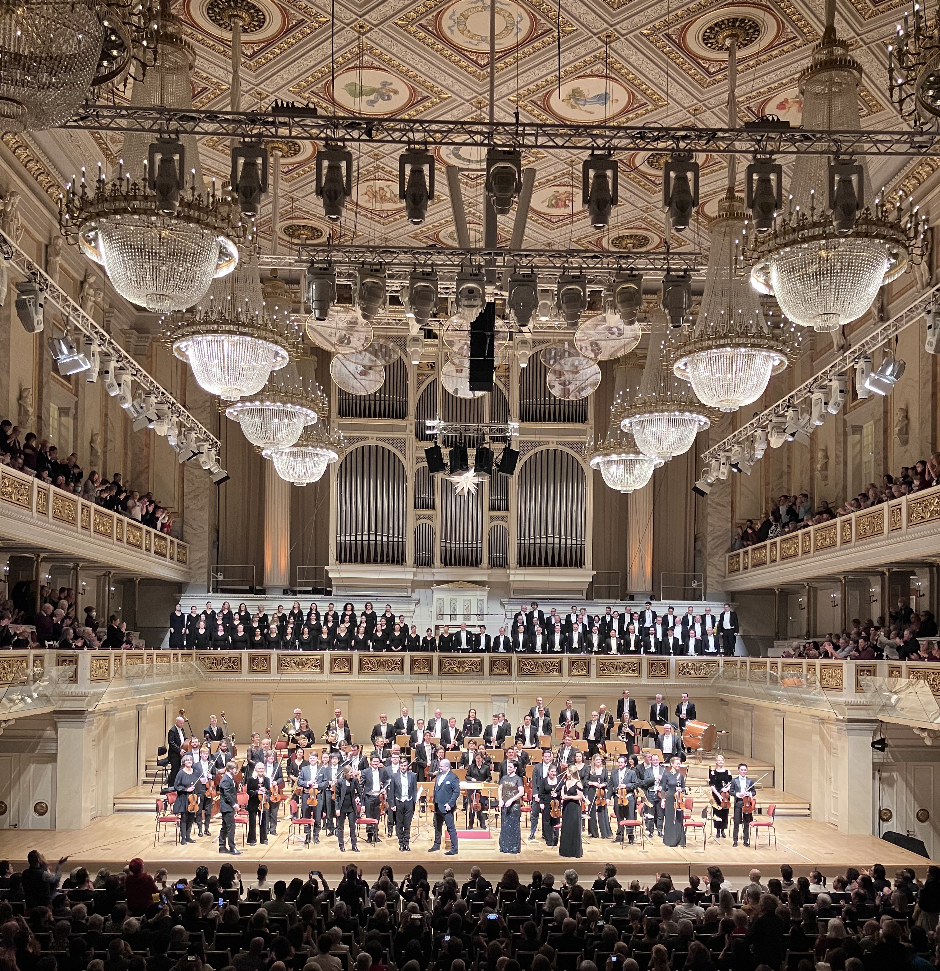 Geklatscht wird nach jedem Satz und im Finale sogar vor dem Alla marcia. Canellakis ist da ganz cool, deutet eine Drehung an, nickt freundlich, weiter gehts. Nur mein Sitznachbar versinkt angesichts solcher Klatscherei in seinen Stuhl und flüstert: „Das kann doch nicht sein. Das kann doch nicht sein“. Doch schon rollt das Finale unaufhaltsam Richtung Apotheose, sangeskräftig unterstützt vom Solistenquartett Siobhan Stagg, Sophie Harmsen, Andrew Staples und Michael Nagy. Und schlussendlich mündet das vergnügliche Presto ins Prestissimo, und das ist dann ohne Zweifel ein explosiver Feger, in dem selbst die Musiker an Triangel und Becken ins Schwitzen kommen. Erwartbar makellos zieht sich der Rundfunkchor Berlin aus der Silvester-Affäre.
