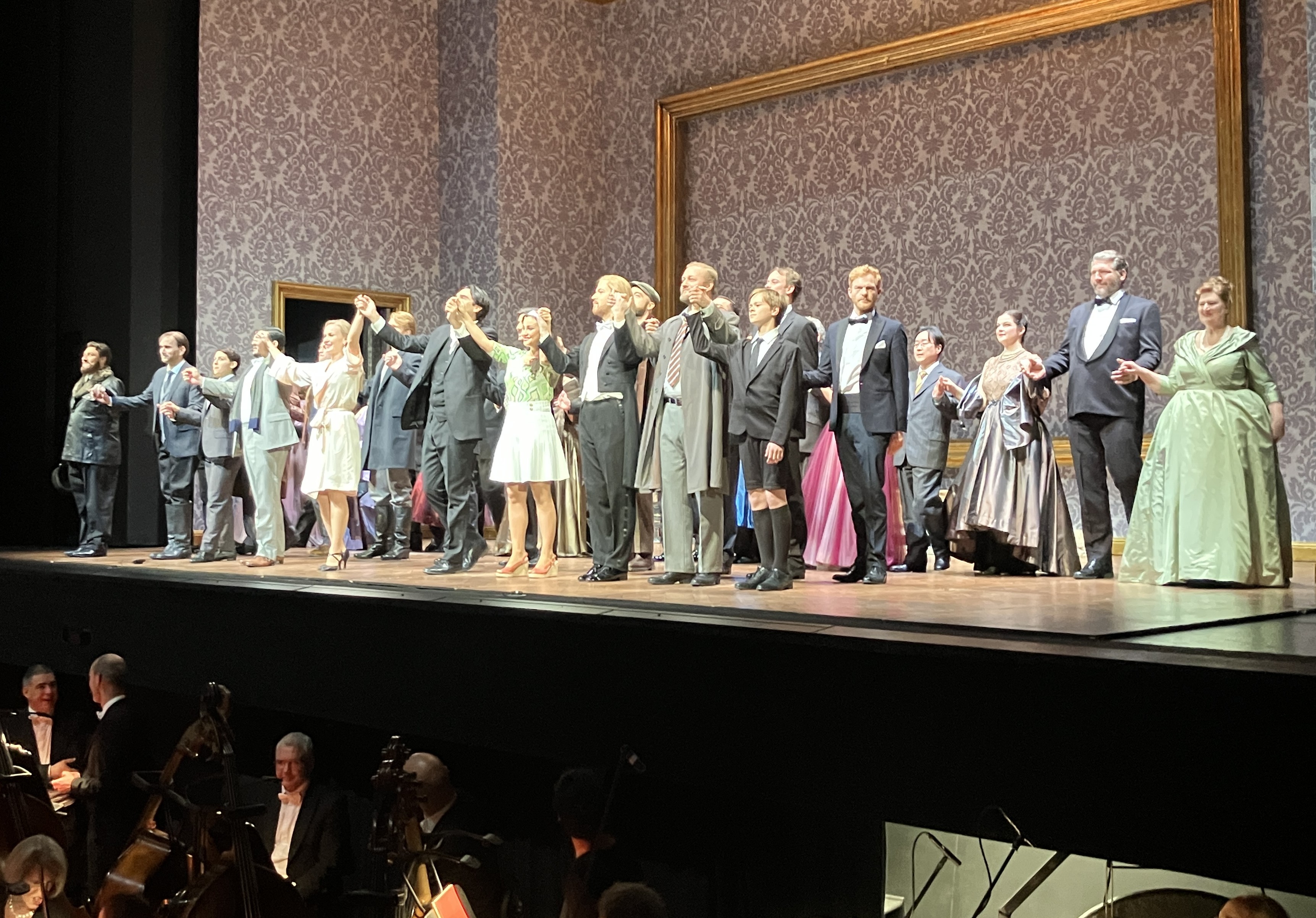 Regisseur Loy zügelt die Reißer-Qualitäten von Fedora, deren Welterfolgsgeschichte einst mit der Bellincioni und Caruso begann. Man sieht ästhetisch stimmige Bilder und schöne, in sich verschlossene, aber irrational handelnde Menschen. Clean wird das Drama entrollt. Chor- und Salonszenen werden Gemälde-gleich in den Hintergrund gelegt. Dazwischen nerven mal wieder Video-Close-ups, diesmal im güldenen Prunkrahmen (Velourfilm AB). Vida Miknevičiūtė (zuletzt Seidenkleidchen, Pelz, Riemchenpumps) steigert sich vom Racheschwur an und läuft vorm Sterbemonolog zu Hochform auf. Jonathan Tetelman singt Amor ti vieta sehr kontrolliert, emotional aber frugal. Ganz verstehe ich nicht, was das Programmheft mit exterritorialer Gefühlsemanation meint.