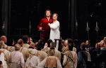 Anna Netrebkos Leonora hat Präzision, Power und Readiness. Der Höhepunkt ist D’amor sull’ali rosee, eine der magischsten Verdiarien überhaupt. Die Sopranstimme ist rund und fest und wird gut geführt, der Ton ist suggestiv, der Klang groß, die Gefühlslinie leuchtet fein-üppig, die Energiereserven scheinen endlos. Das Timbre: inzwischen mehr Matrone als Backfisch. Der Saal ist aus dem Häuschen. Die Brusttöne, eine ihrer Markenzeichen, tönen kraftvoll, doch nie harsch.