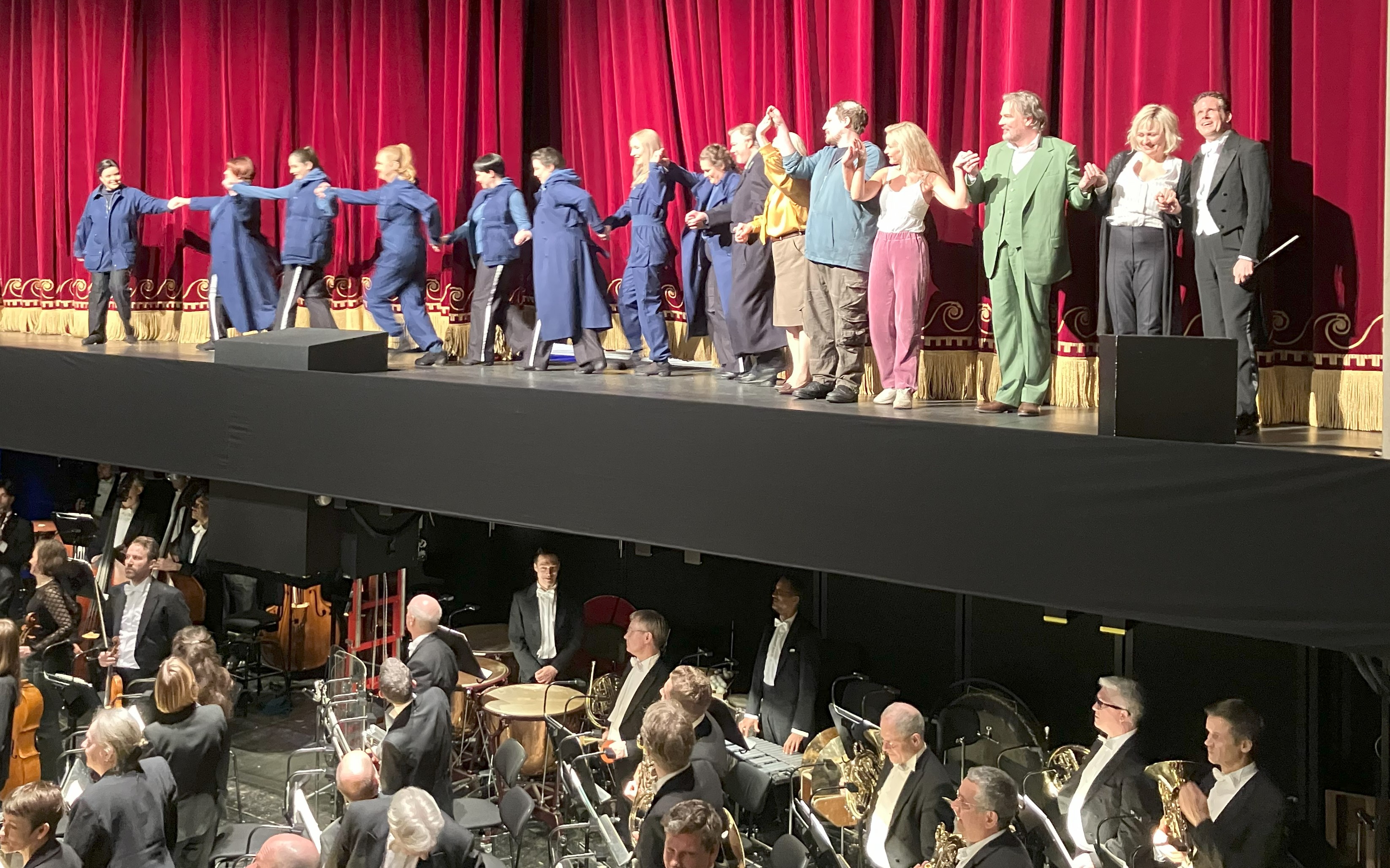 Heikel die Brünnhilde von Anja Kampe. Im Duett mit Siegfried spielt sie, wie Tscherniakow inszeniert, nämlich verspielt und ironisch. Gut. Außerdem singt sie, wie Tscherniakow inszeniert. Verspielt und ironisch. Als wäre sie nicht Brünnhilde, sondern eine, die Brünnhilde spielt. Nicht gut. Das funktioniert nicht. Gern indes höre ich Helle Wehr und Racheterzett, wo sie neben Kares und Vasar überzeugt. Im ganzen 2. Aufzug hat sie astreine Spitzentöne. Starke Scheite und Mein Erbe nun nehm‘ ich zu eigen hingegen enttäuschen. Das klingt mehr nach Achtsamkeitskurs im Grunewald als nach Walhalls Ende, und die letzten vier Zeilen hört man gar nicht mehr richtig. Gleichwohl geht der Klang ihrer Stimme oft genug unter die Haut. Doch gemach. In ein paar Jahren wird Kampe das adäquat machen, und dann doch wohl auf bestem Niveau.