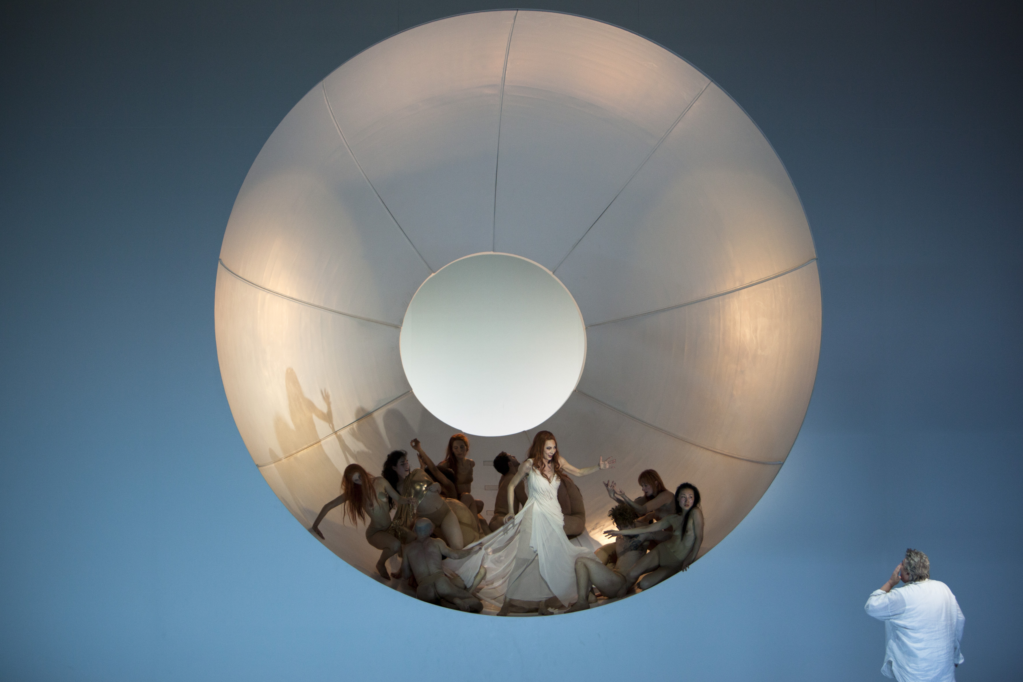 Davidsen singt ausdrucksvolle Piani in Dich, teure Halle. Wenn sie in Fahrt ist, wirds einen Ticken laut (Ich preise dieses Wunder). Oder sie kämpft – erfolgreich – um die Einbindung von etwas steifen Tönen in die Linie. Befürchtungen, sie singe kalt oder sinnentleert, zum Teil genährt von ihrem Liederabend an gleicher Stelle 2022, gehen auf in Sopranschall und Wagner-Rauch. Jeder Ton hat bei ihr eigenen Klang, jede Lage eigenes Timbre. Das Kostüm der Norwegerin sieht übrigens so 1950er aus, dass Elisabeth Grümmer es in der Deutschen Oper getragen haben könnte.