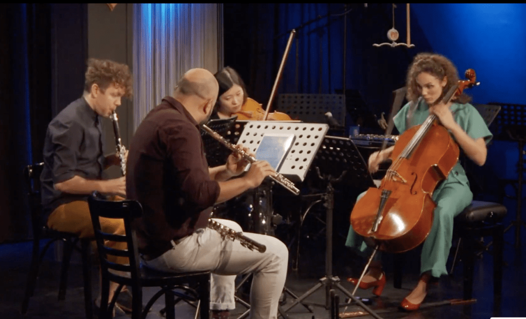Dienstag, 26. 1. 2021, BKA-Theater. Unerhörte Musik sendet wieder, heute mit dem Ensemble lovemusic aus Winnie Huang (Geige), Lola Malique (Cello), Emiliano Gavito (Flöte), Adam Starkie (Klarinette). Man beginnt mit US-Minimalismus von Pauline Oliveros (Sonic Meditation 1 Teach Yourself to Fly, 1974, interessanter gruppentherapeutischer Einschlag), geht zu Carola Bauckholt und den locker delikaten Luftwurzeln von 1993 über und landet bei der Kolumbianerin Violeta Cruz, die in New Piece fast ein Konzert für Aufdrehfiguren schafft. Der Ton ist eigen, die Textur licht und angemessen surrealistisch (Uraufführung). Auch Cove von David Bird ist eine Uraufführung. Das Werk gibt sich einem unaufhörlichen Fließen hin, und was so entsteht, kann als intimes Palaver zwischen entspannten, hochkonzentrierten Musikern beschrieben werden. Schlussendlich von Sivan Cohen Elias das dicht komponierte Air Pressure (2010), ein Stück voller Kontrastspannungen und rabiater Virtuosität, in dem sich die Töne wie von selbst vermehren.